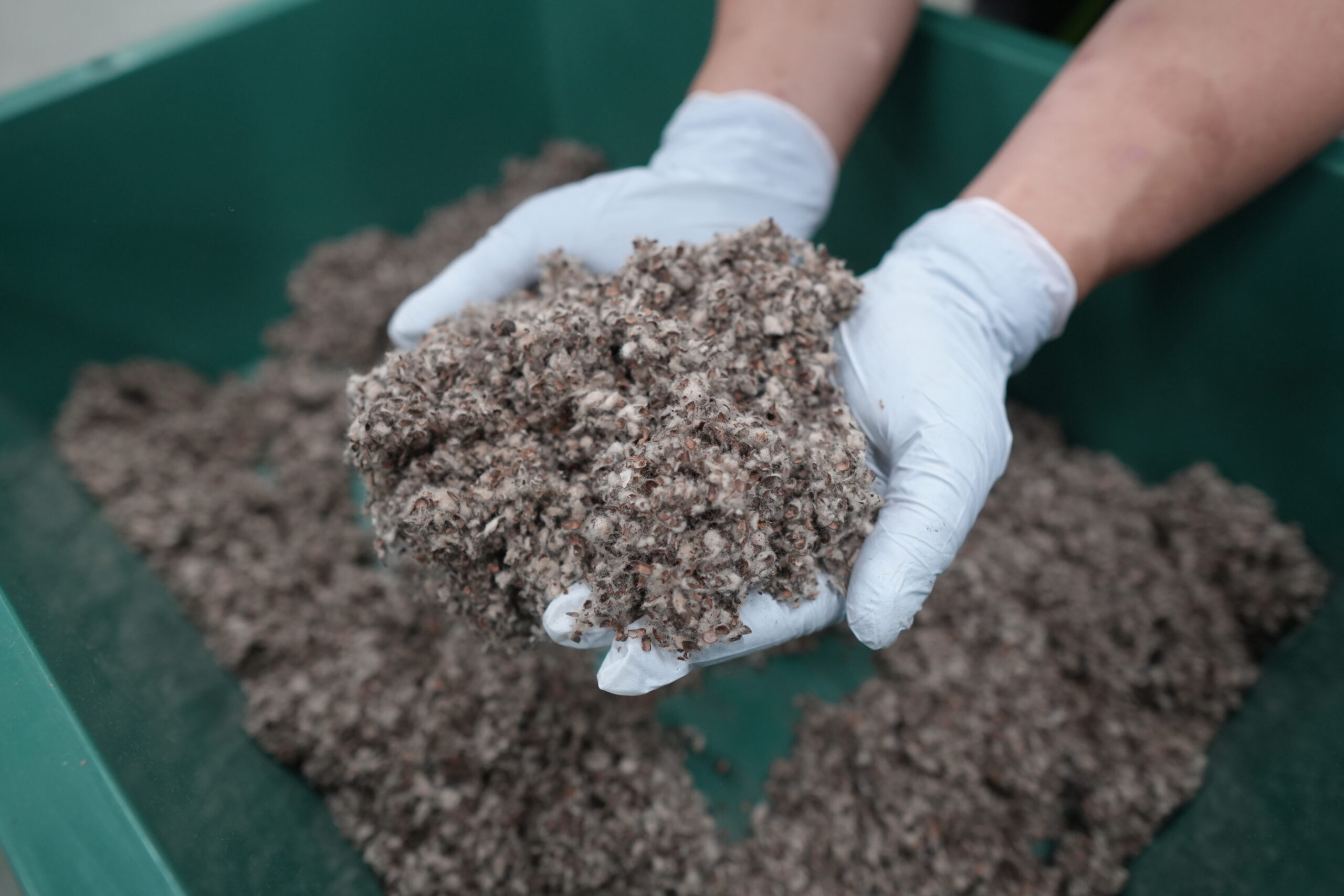 キノコを栽培する菌床の原料は、水やコットンハル・ビートパルプ・有機稲わら・種菌のみ。将来的には、収穫後に自然発酵をして完熟堆肥として生まれ変わらせる予定です。野菜や米づくりなど、地球にやさしい肥料として土壌改良にも貢献を目指しています。